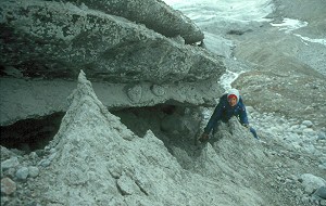 Debris melting out from ice at the edge
