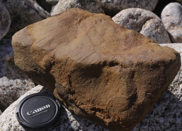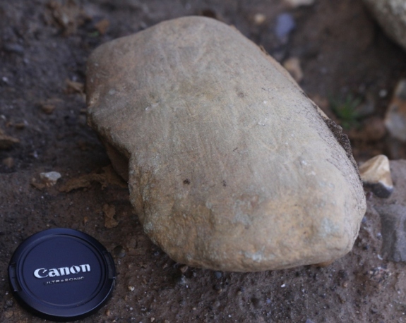 This second one shows the striations very clearly on one face of the rock. It is quite common for just one part of a rock to pick up these scratches as it moves around under the glacier.